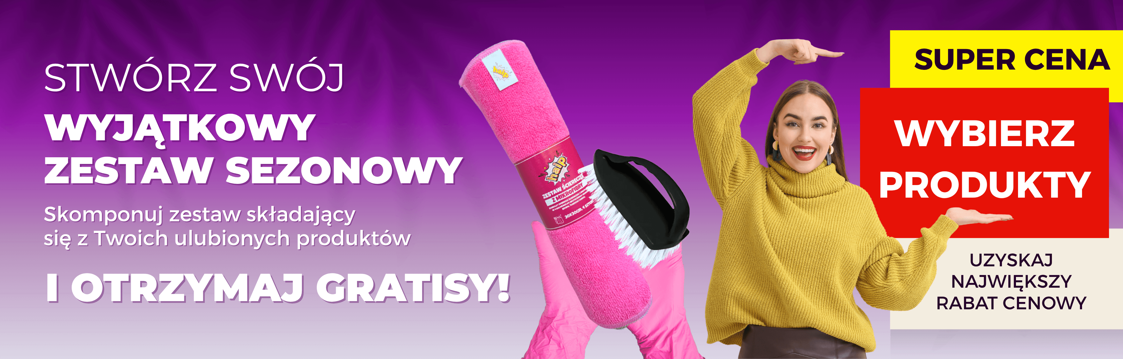 Otrzymasz gratisy w postaci: szczotki do czyszczenia, zestawu mikrofibr i rękawiczek.